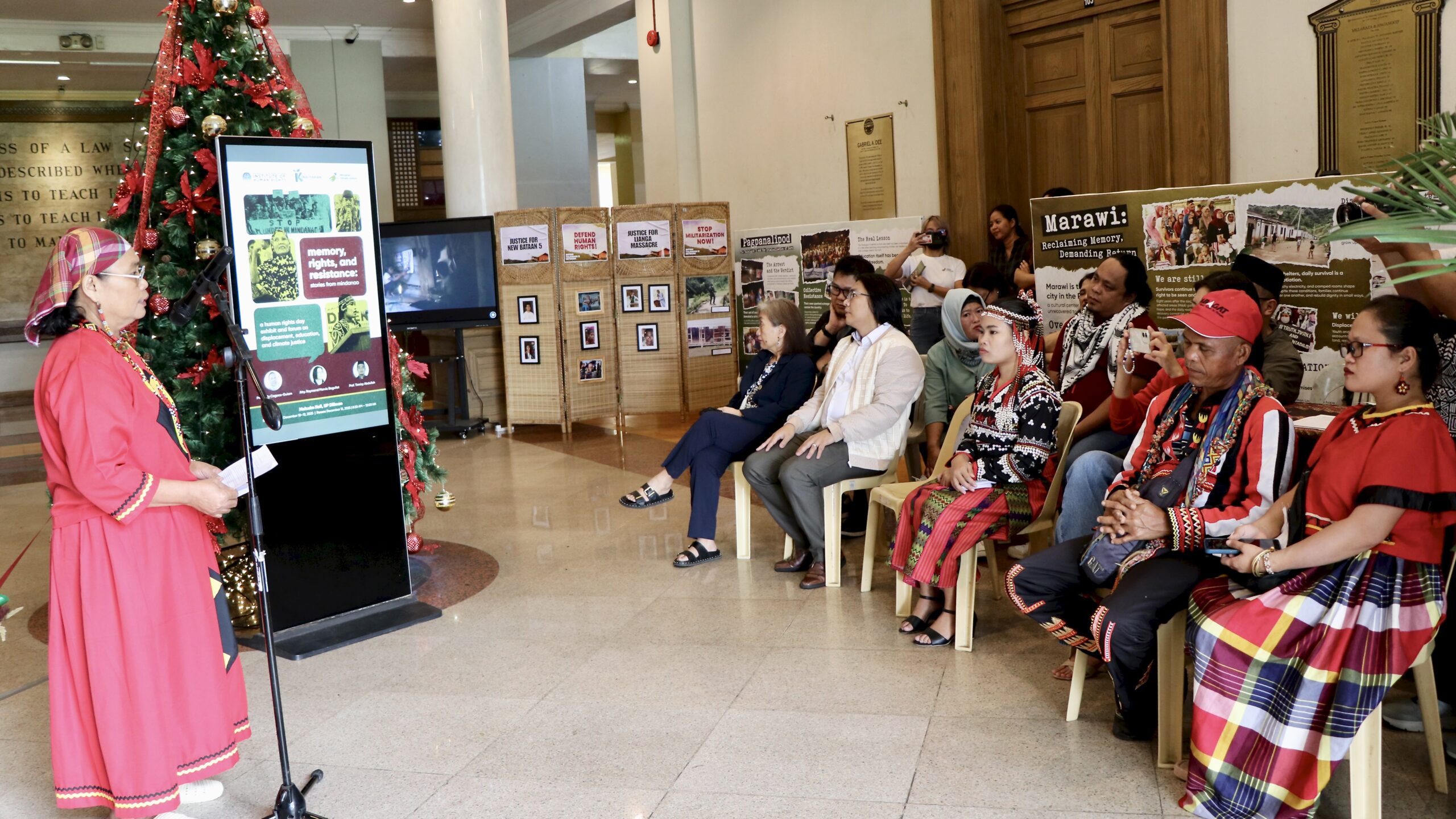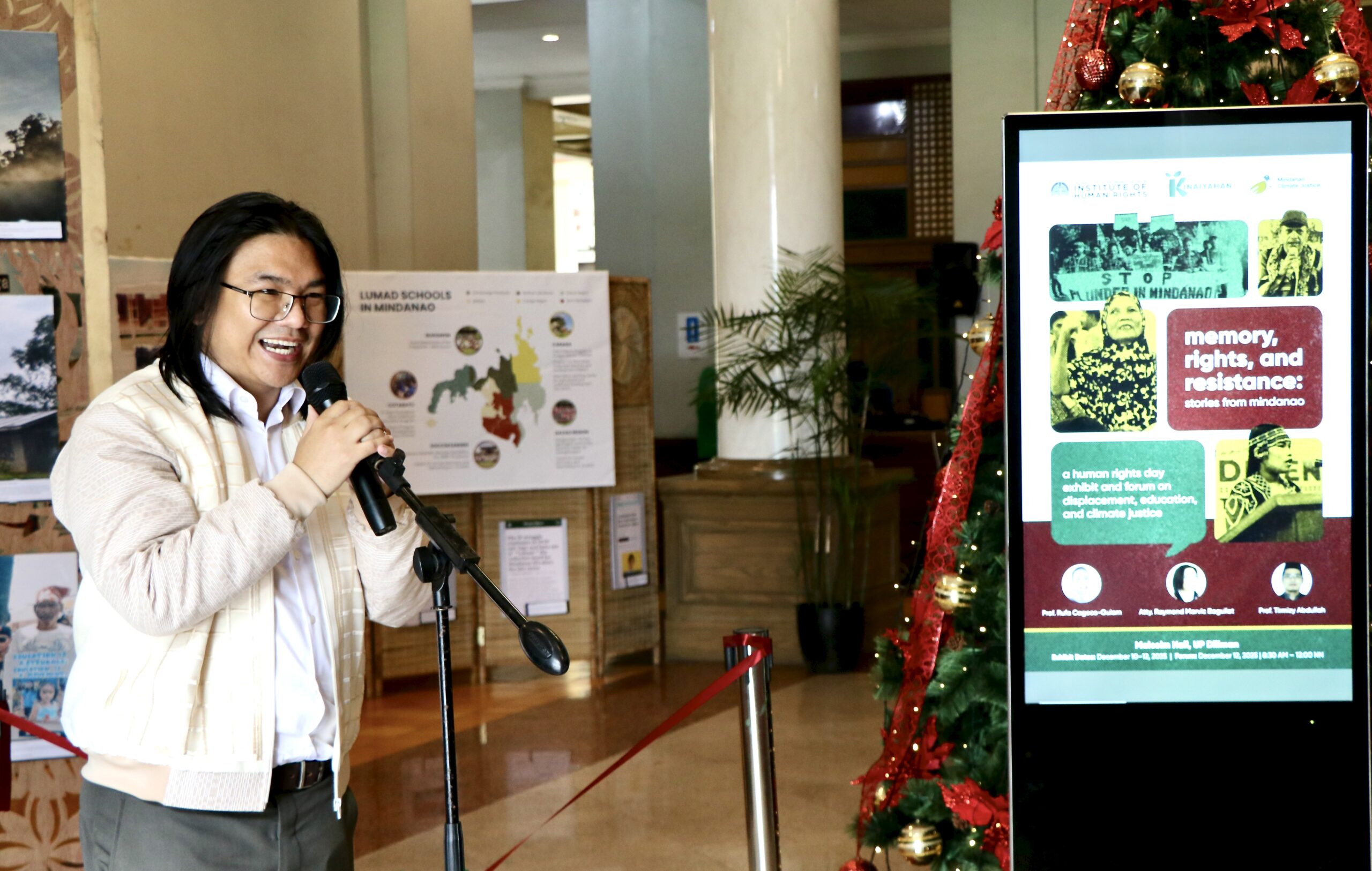 The University of the Philippines Institute of Human Rights (UP-IHR), in partnership with Mindanao Climate Justice (MCJ), opened the exhibit “Memory, Rights, and Resistance: Stories from Mindanao” on International Human Rights Day—a people’s archive on land, displacement, and climate justice grounded in the lived struggles of Lumad and Moro communities.
