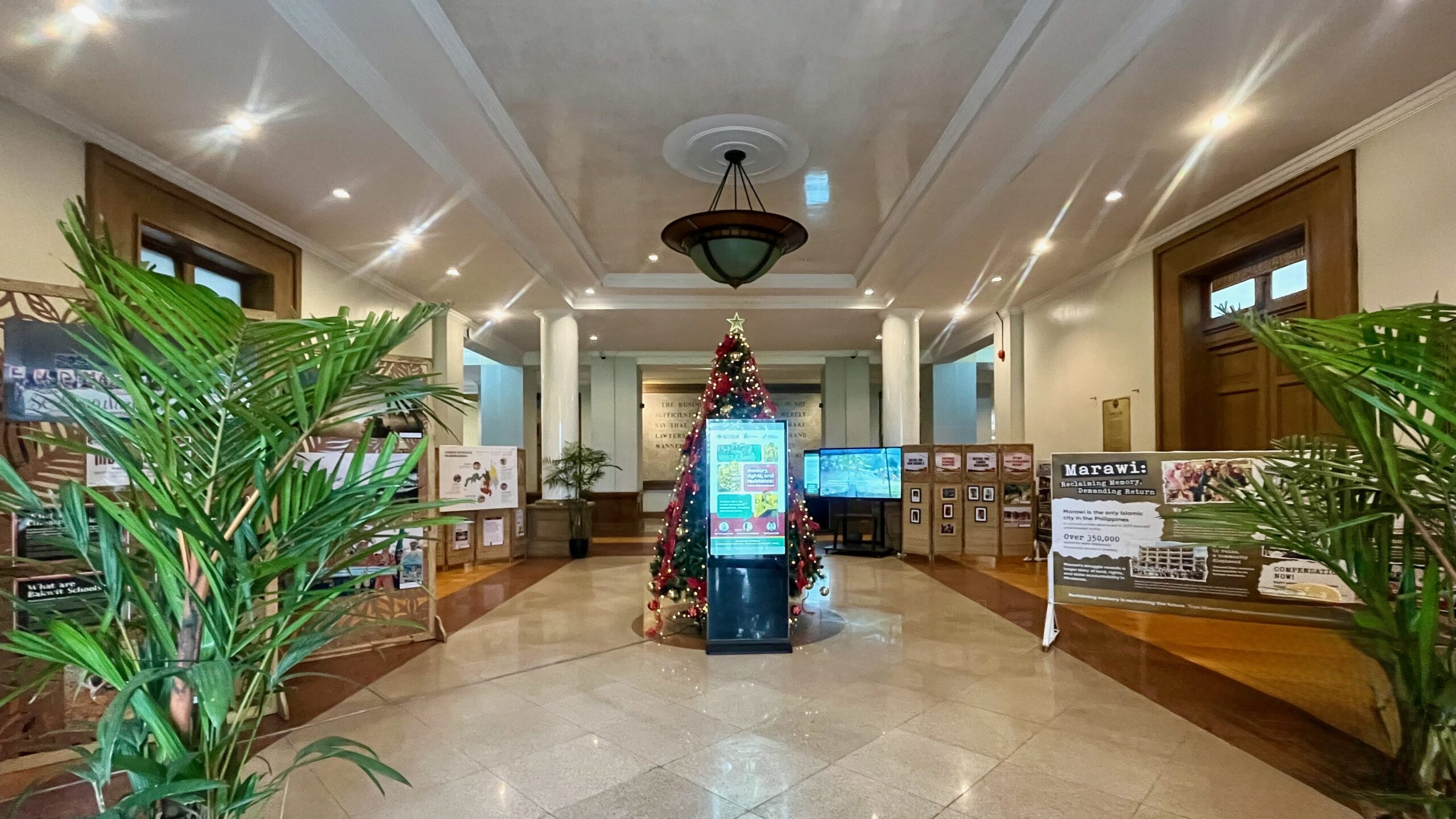 Eight years after the 2017 siege, thousands of Maranao families remain unable to return home. The exhibit panel on Marawi highlights how displacement cuts across generations: homes lost, mosques destroyed, archives erased, and families resettled in overcrowded, flood-prone relocation sites.