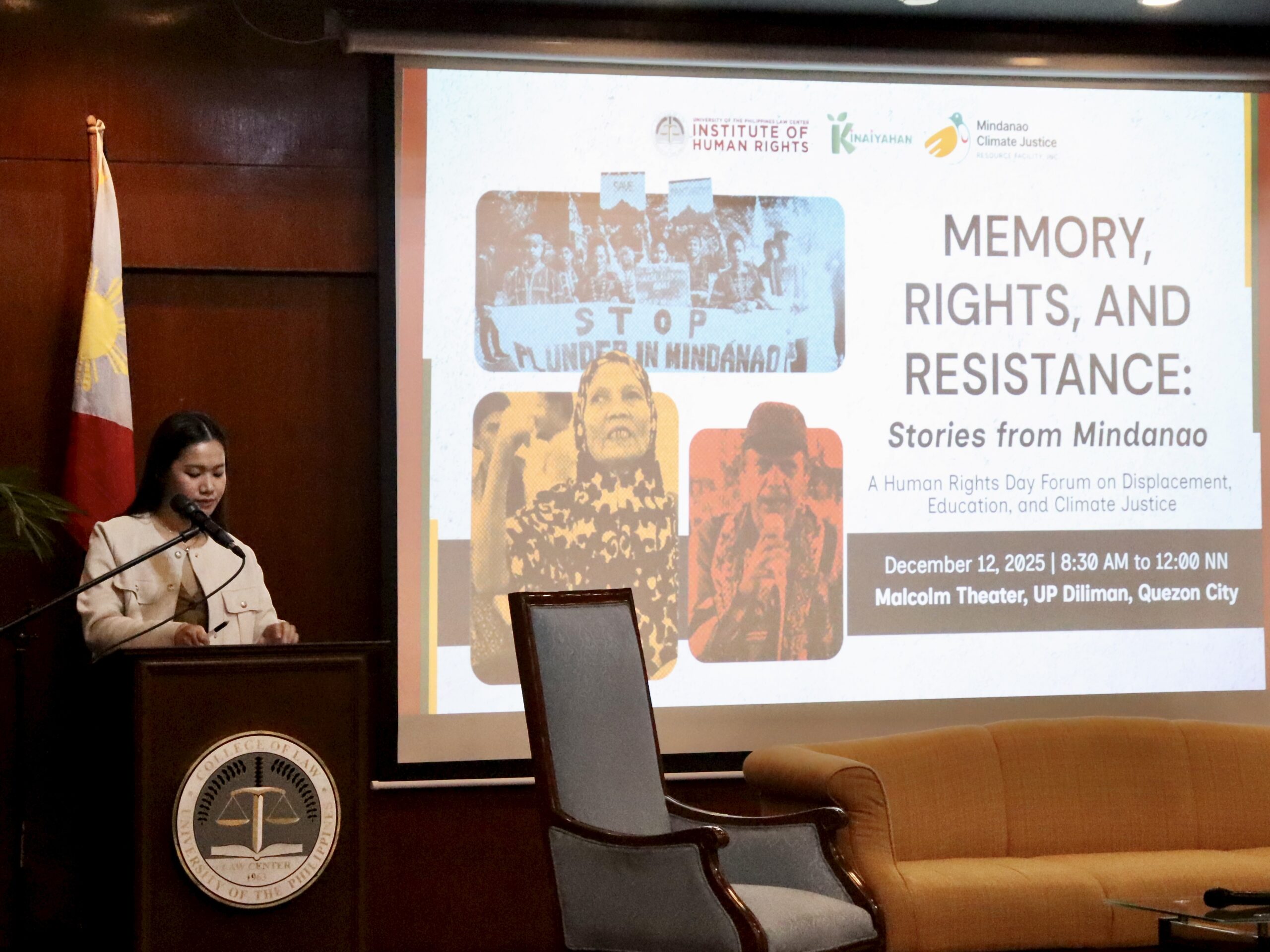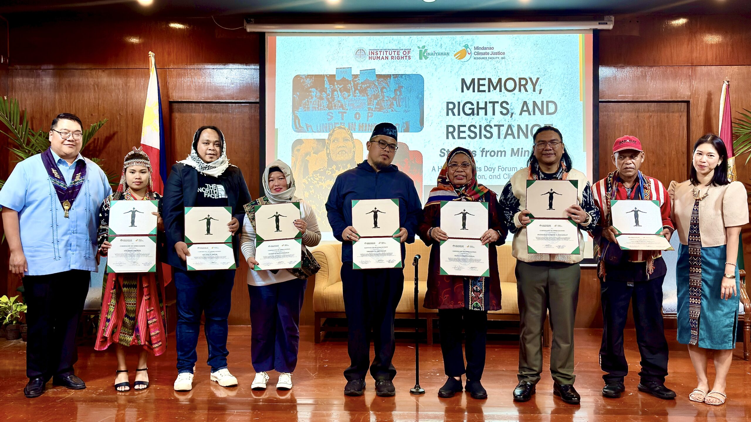 The Human Rights Day Forum Memory, Rights, and Resistance: Stories from Mindanao marked the culmination of a three-day Human Rights Day program that brought Mindanao’s struggles into the heart of the University of the Philippines College of Law. Organized by the UP Law Institute of Human Rights (UP IHR) in partnership with Kinaiyahan – Youth for Climate Justice Movement and Mindanao Climate Justice (MCJ), the program began with a public exhibit and concluded with a forum that insisted on memory not as commemoration, but as resistance.